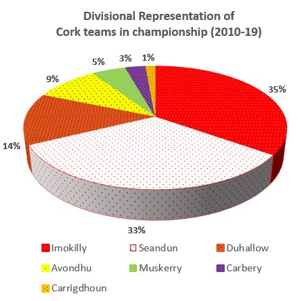 Carrigdhoun and Muskerry, divisions in which the small ball enjoys relative parity with football, will hope to improve its harvest over the coming years. With players from Kildorrery and Ballyhooly recently infiltrating successful Cork minor and U20 teams, it is expected that the Avondhu cohort will also continue to grow. In the heart of the city, one must hope that the Rockies and ‘Barrs can restart the mass-production of talent that has yielded 57 county championships between them. The current dominance of the Imokilly team at club level, along with the recent resurgence of Glen Rovers has ensured that future Cork hurling teams will continue to be buttressed by it’s traditional base. Should the baronies beyond Ring’s ideological divide increase their output level, The Rebels will surely return to the apex of the national game.
