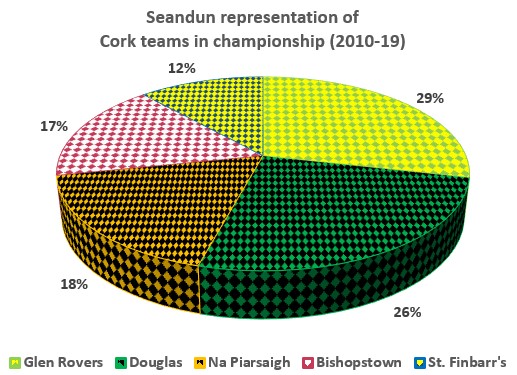 While the figures show that the Seandun influence on Cork hurling has remained relatively undiminished over the years, the influence of ‘The Big Three’ has certainly waned. The production line on Church Road has become worryingly stagnant, the eminent Blackrock club having had no championship representative since Wayne Sherlock. Their Southside neighbours, St. Finbarr’s have also had their troubles with Damien Cahalane their sole intercounty product since Ronan Curran’s retirement in 2011. While Na Piarsaigh’s 18% seems healthy, this percentage is distorted by the final remnants of the great Cork team of the Noughties, many of whom soldiered on into the early part of the decade. Since the O’Hailpin’s and John Gardiner departed the scene, only Christopher Joyce has emerged from the Fairhill club.