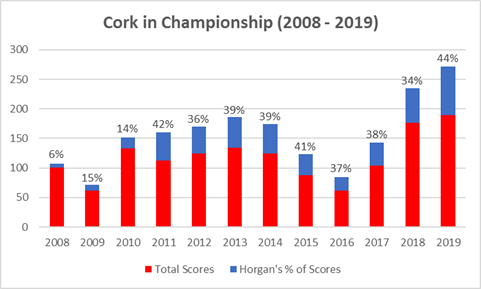 If the progress of 2013 suggested that a sleeping giant was finally awakening from a lengthy slumber, the years that followed would rewrite the narrative. Although Horgan and co. would atone for the year previous in 2014, defeating Limerick in the Munster decider, a wretched All-Ireland semi-final performance against Tipperary debunked the cliched ‘Mushroom Theory’ that had permeated back into Cork hurling lexicon. Cork were by now in the throes of an underage development crisis, the drought on a national scale dating back to 2001. At senior level, the knock-on effect was evident, the regression in the performance of established players undoubtedly owing to the dearth of competition. By the end of 2016, Horgan’s scoring average from play in championship had dropped to below two points per game. Old accusations regarding the efficacy of his overall game began to gain traction once more. In the February of 2017, Cork manager Kieran Kingston dropped Horgan, opting for stick over carrot to coax more out of his talisman. For the first time in almost six years, Cork lined out in a competitive game without Horgan and despite a comfortable Kilkenny victory, he was again among the subs for the following week’s game against Waterford. Whether subconsciously or not, it lit a fire under Horgan, extracting from him a level of performance that has seen him occupy a different stratosphere to many of his peers. Scoring four points from play in the unexpected championship defeat of Tipperary, Horgan continued his stellar form throughout the summer, over-taking Christy Ring as Cork’s all-time championship record scorer in the Munster Final defeat of Clare. Averaging four points from play over the course of the championship, any allegations of an over-reliance on placed balls were soon suppressed. 2018 would follow a similar trajectory, provincial honours and an All-Star doing little to quell the frustration of another All-Ireland semi-final defeat, the sixth of Horgan’s career.